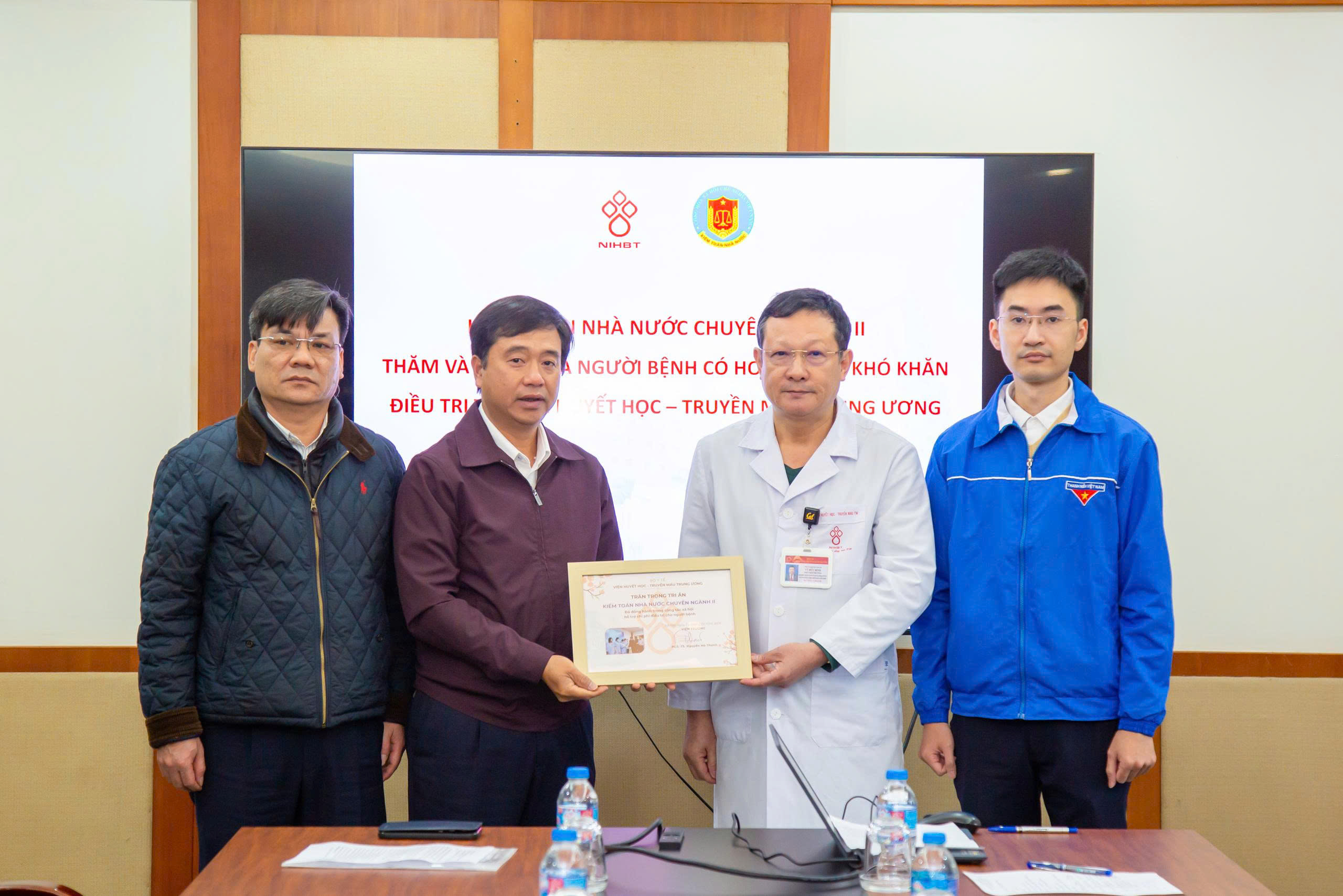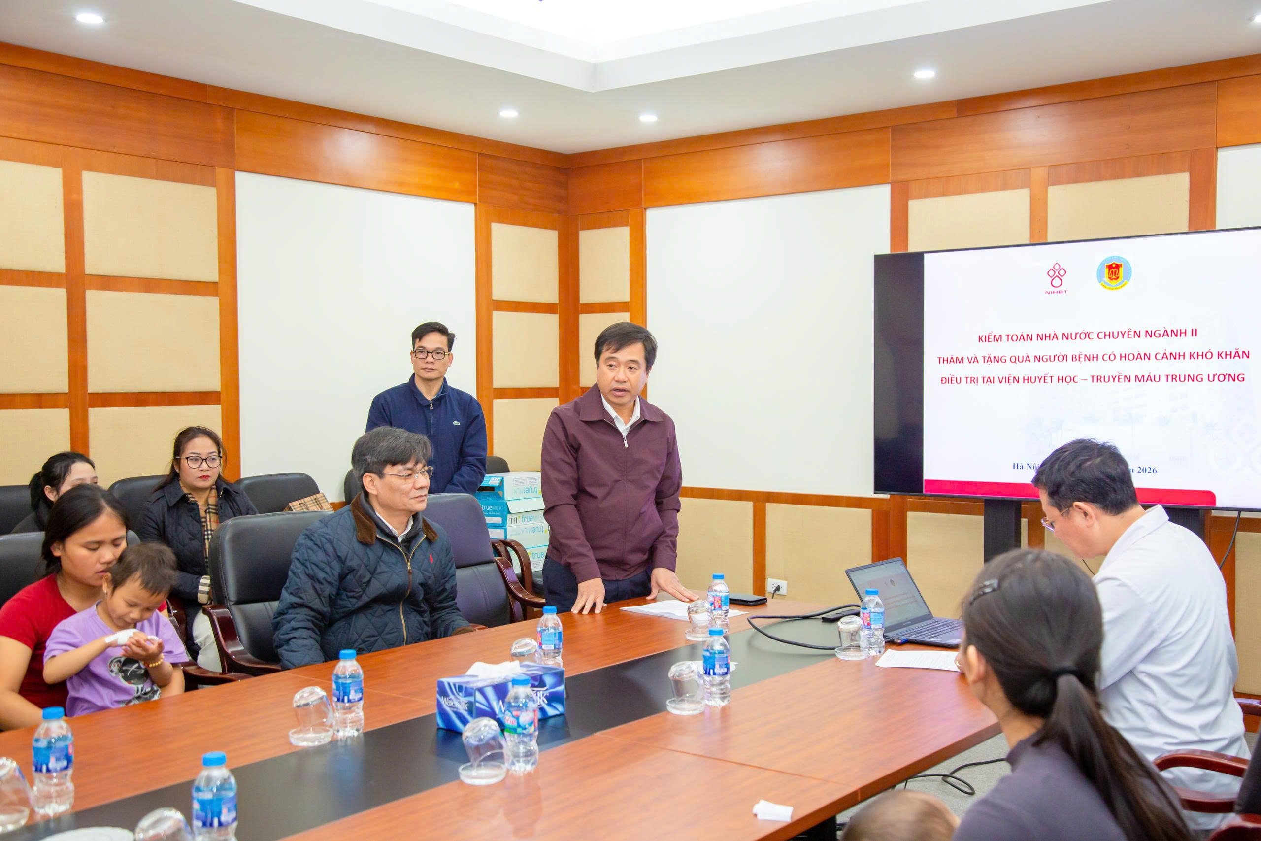 Trong bầu không khí ấm cúng, gần gũi, đại diện lãnh đạo Viện Huyết học – Truyền máu Trung ương bày tỏ sự trân trọng đối với sự đồng hành của KTNN chuyên ngành II. Thay mặt người bệnh, PGS.TS Vũ Đức Bình – Phó Bí thư Đảng ủy, Phó Viện trưởng Viện gửi lời tri ân sâu sắc tới tập thể công chức, người lao động của đơn vị và chia sẻ: “KTNN chuyên ngành II đã luôn đồng hành với Viện trong nhiều hoạt động hỗ trợ người bệnh, trong đó có những đơn vị máu quý giá. Mặc dù thời điểm cuối năm hết sức bận rộn, nhưng các anh chị vẫn dành thời gian đến với người bệnh, đó cũng là sự đồng hành hết sức ý nghĩa với nhân viên y tế để giúp đỡ người bệnh.”