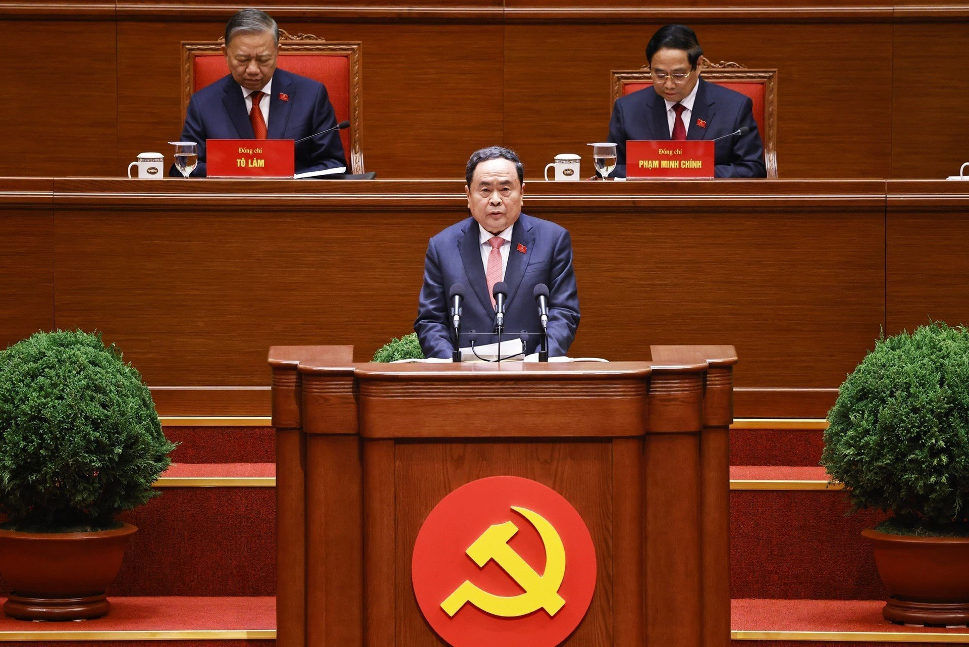 Đồng chí Trần Thanh Mẫn cho biết Ban Chấp hành Trung ương Đảng khóa XIV đã thống nhất tuyệt đối bầu đồng chí Tô Lâm, Tổng Bí thư Ban Chấp hành Trung ương Đảng khóa XIII tiếp tục giữ chức Tổng Bí thư Ban Chấp hành Trung ương Đảng khóa XIV.