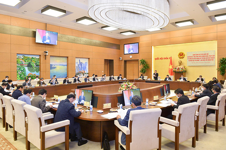Tại buổi làm việc, Đoàn giám sát yêu cầu Chính phủ làm rõ các vấn đề liên quan đến hệ thống chính sách pháp luật về quy hoạch; Tiến độ hoàn thành các quy hoạch; Phương pháp lập, phê duyệt quy hoạch…
