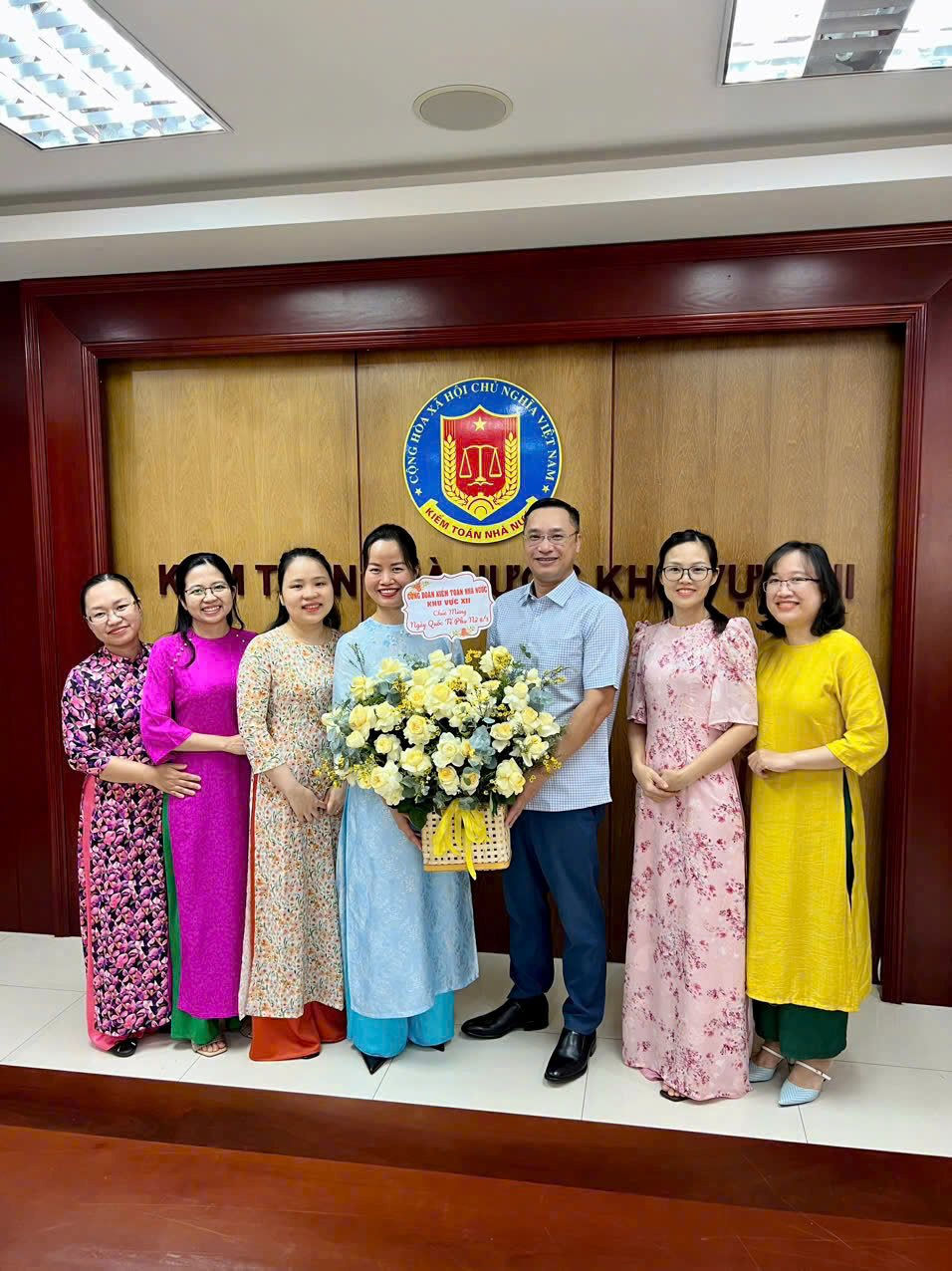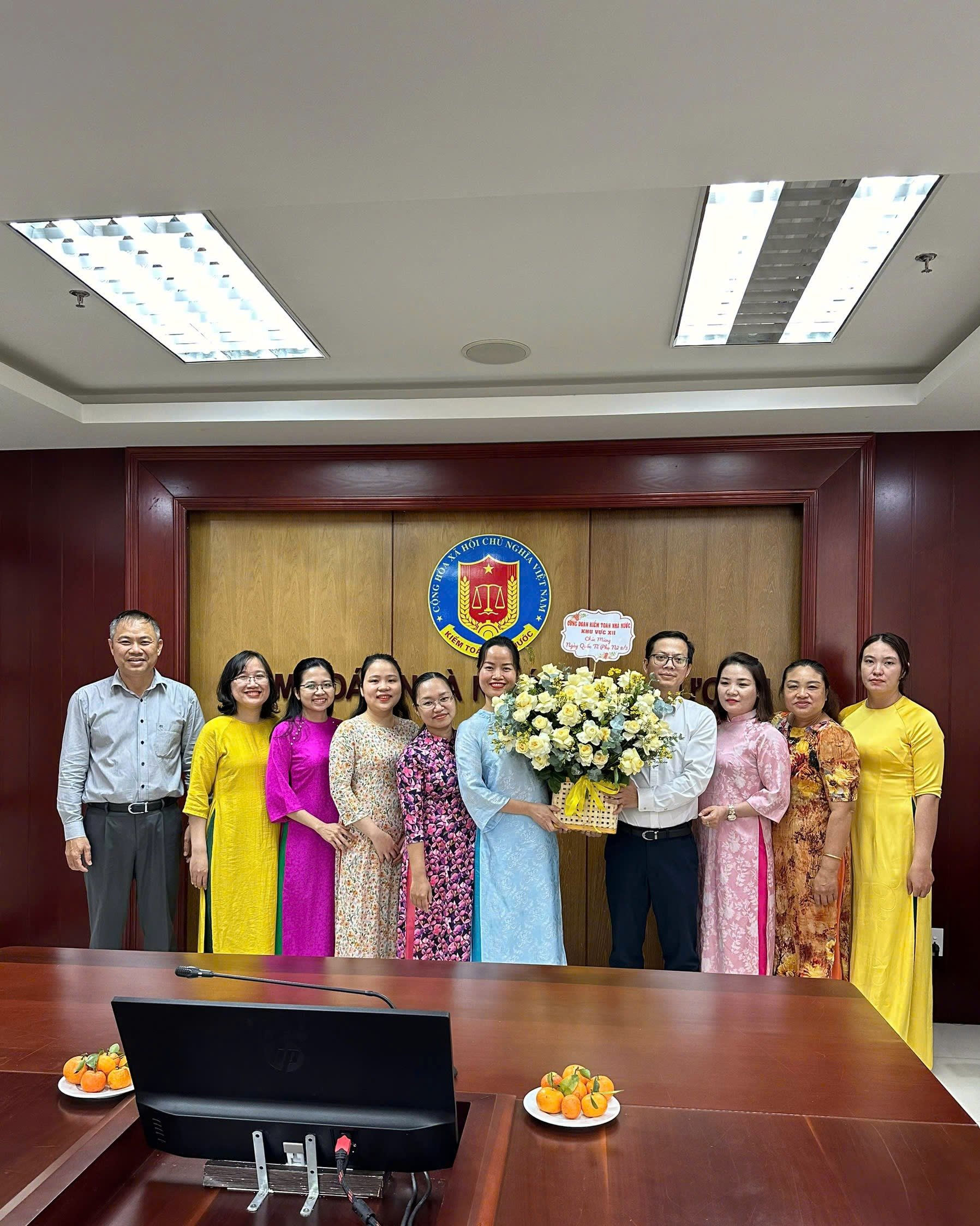 Tặng hoa chúc mừng ngày Quốc tế phụ nữ 08/3, Đại diện Ban chấp hành Công đoàn gửi lời chúc tốt đẹp đến tập thể công chức, người lao động nữ tại KTNN khu vực XII.